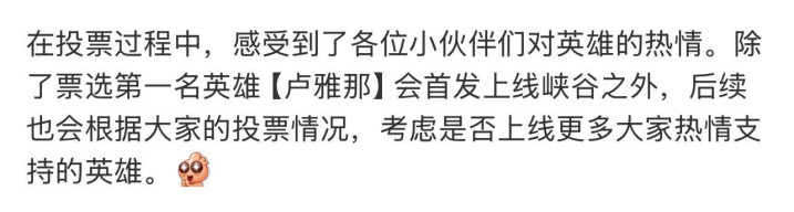 是以说,这个骁雄是玩家选票选出来的一位新骁雄,官方后期会把这位骁雄优先上线,但笔据官方的口气来看,官方表态,这一次投票的热度照实很高,是以官方暗示,后续还会讨论其他几位骁雄的。